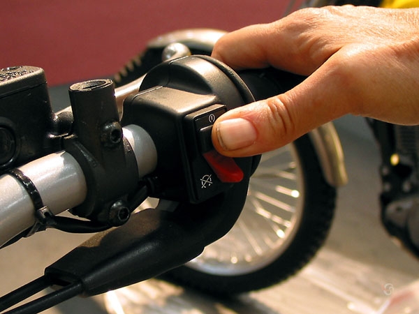 Normaal gesproken zet je de motor uit door de contactsleutel terug te draaien, maar in sommige situaties (als je bent gevallen bijvoorbeeld) kan het lastig zijn om bij de contactsleutel te kunnen. Met de dodemanknop kun je in zo'n geval toch de motor uitzetten.